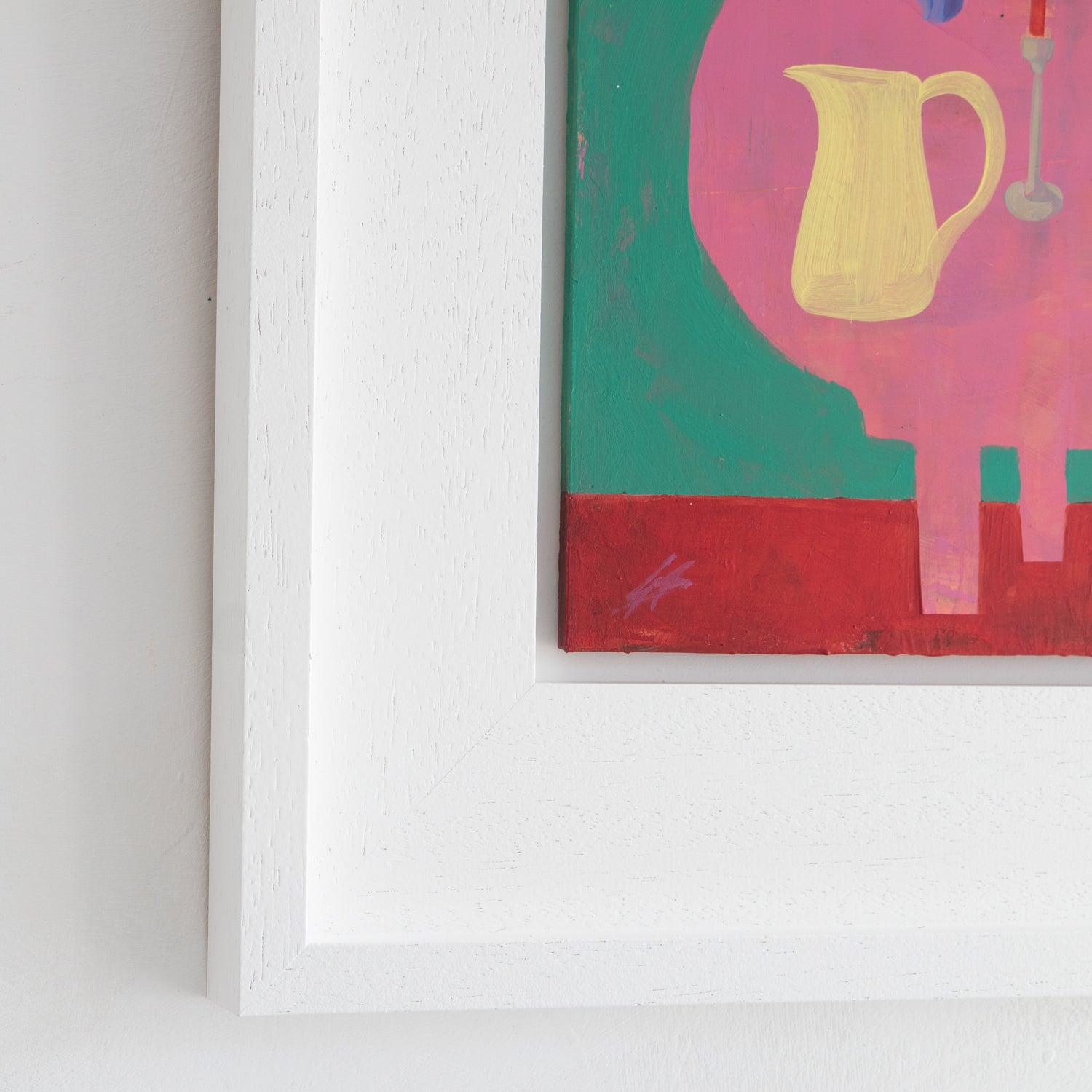 Date Night is framed in a white wood slab frame and is ready to hang.