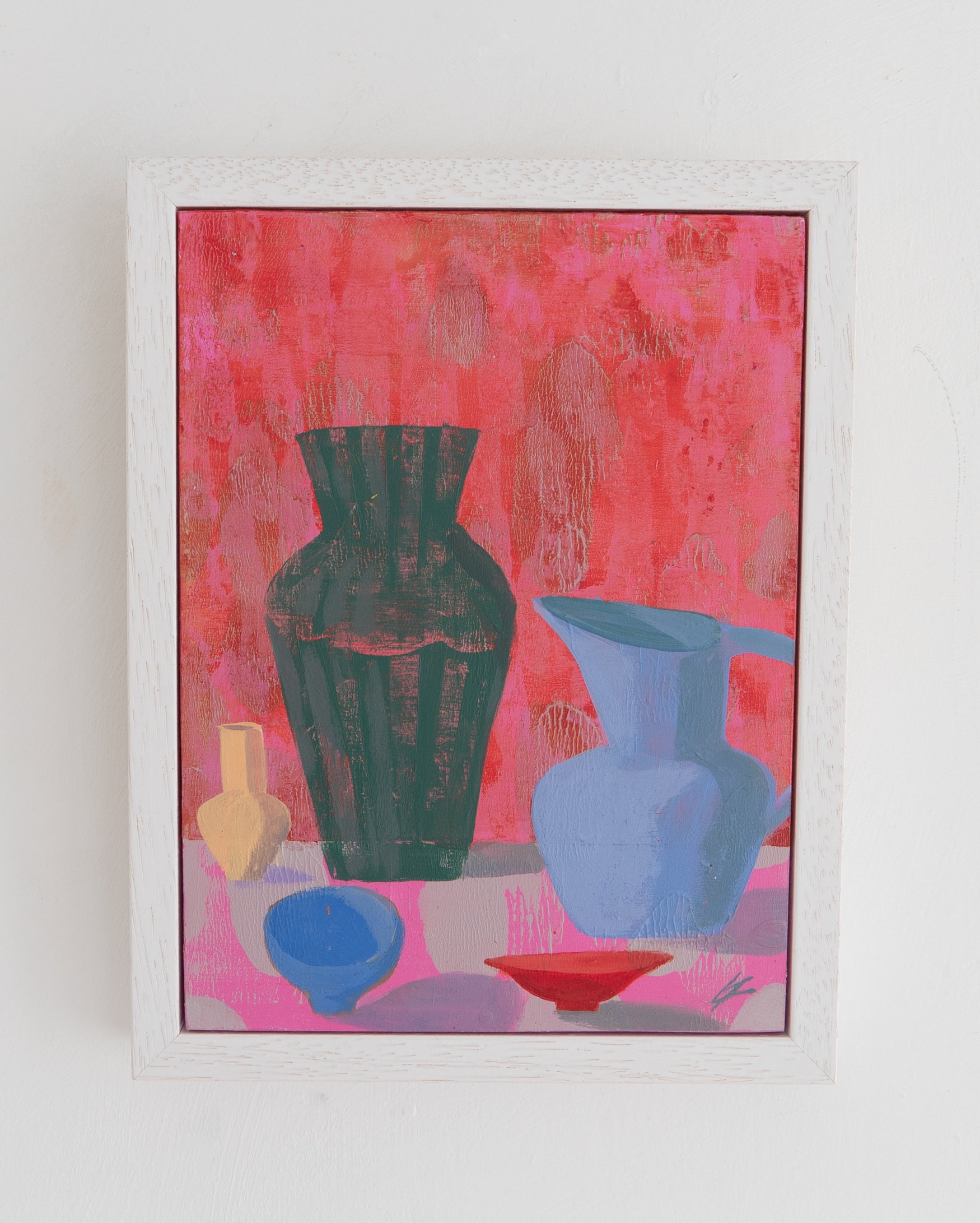 A small, impactful stil- life painting called Happy Companions by artist Gabriella Buckingham.