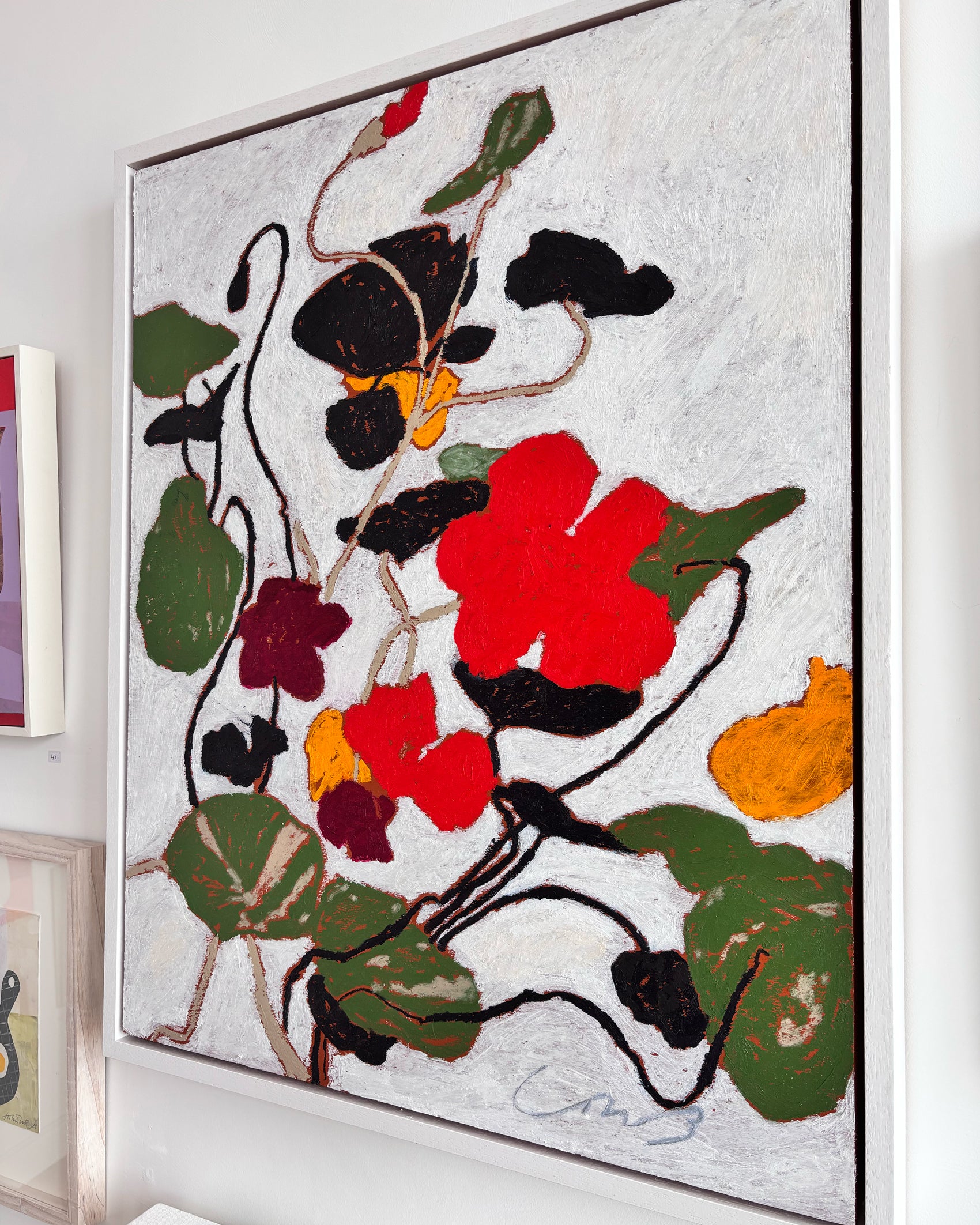 Nasturtium No 5 is a beautiful framed oil pastel on wood panel by Eva Ray.