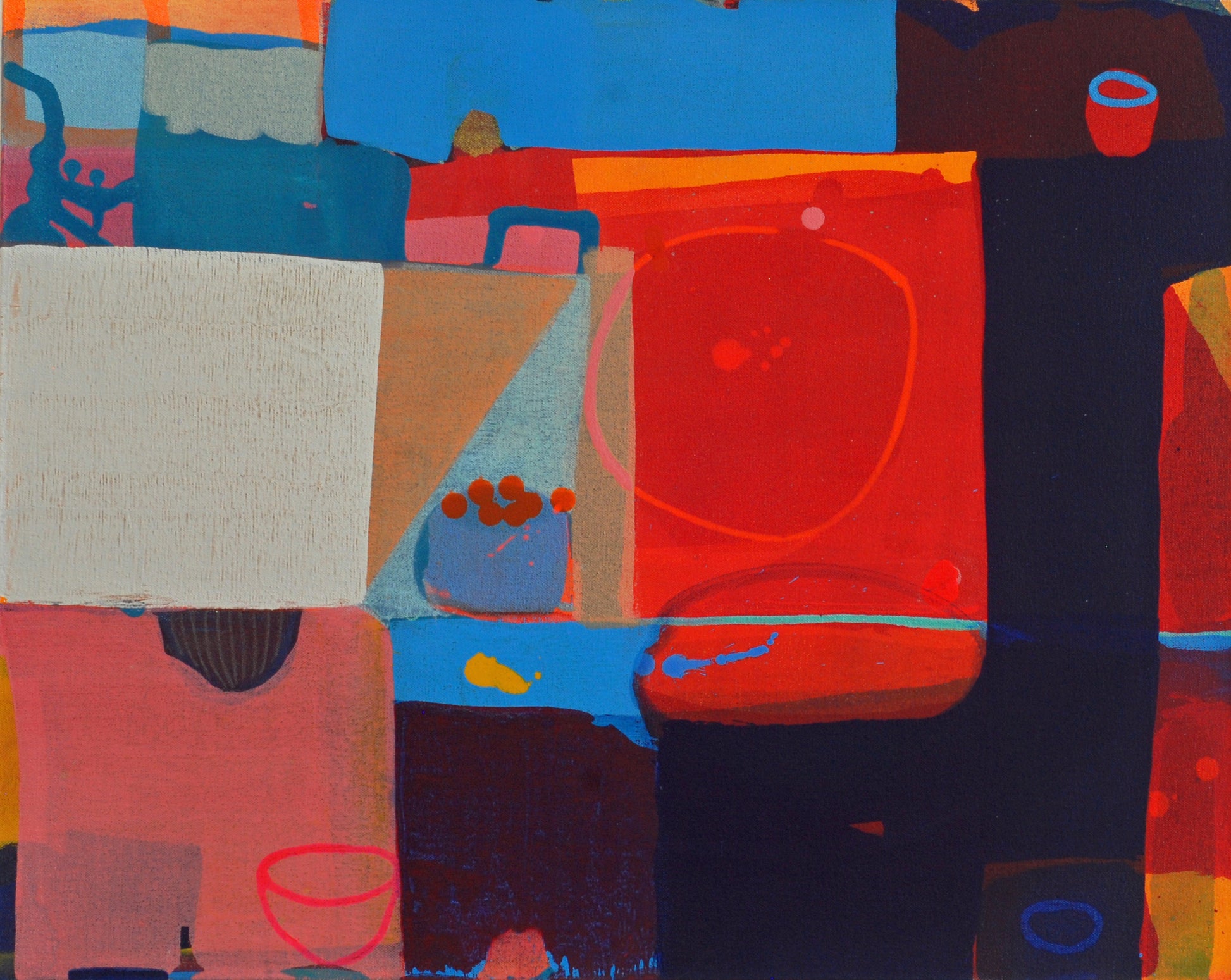 An abstract still life inspired by the Cornish quayside by artist Ella Carty, who lives in Cornwall.