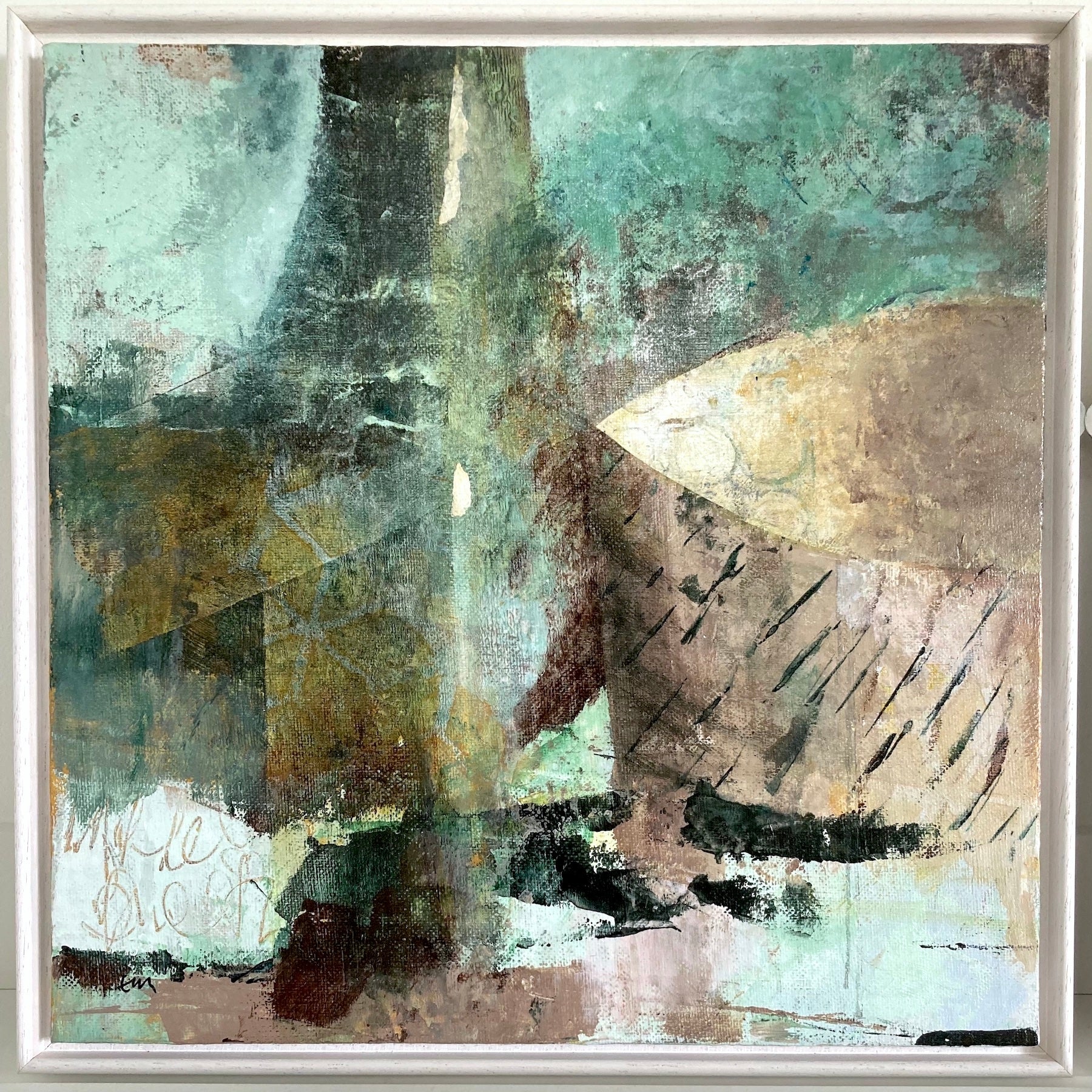 This is an acrylic and collage artwork on canvas board