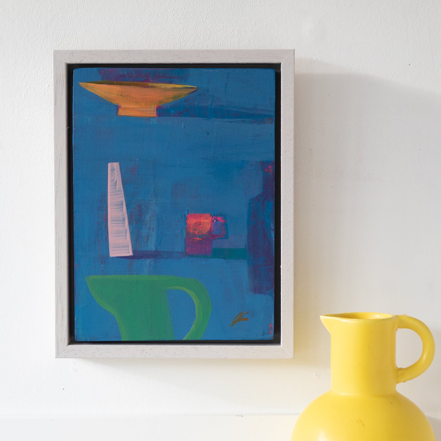 6 x 8 inches, with a grey hand-painted tray frame in addition